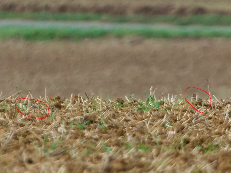 Ganz anders benahmen sich die beiden (erwachsenen) Steinschmätzer zwei Tage zuvor auf der Mauerener Höhe bei Hirschlanden. Waren auf einem grobschollig umgepflügten Ackerrand unterwegs und setzen sich ständig auf die Gipfel der Schollen. Fluchtdistanz eher 100m. Danke an Roland Meinert für den sensationellen Tipp.