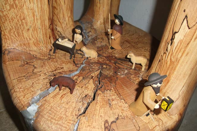 eine Weihnachtskrippe aus dem Hemminger Eulenbergwald: aus einer Buche gemacht mit zwei Arten von Baumpilzen ... mehr über unseren → Eulenbergwald in Hemmingen → Pilze in Hemmingen → Baumarten in Hemmingen |