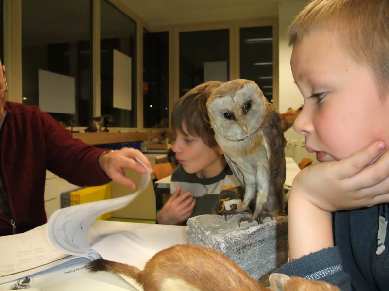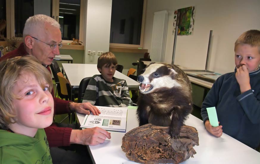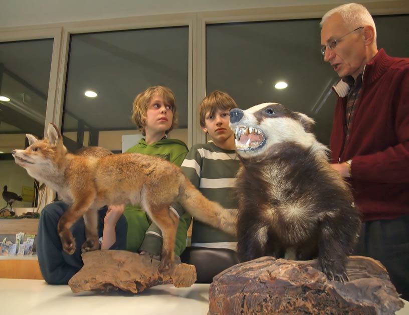 dem NABU Präparate von Dachs, Fuchs, Steinmarder und Hermelin