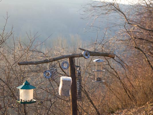 Eine große Futterstelle für Meisen auf dem großen Fels in Schwieberdingen