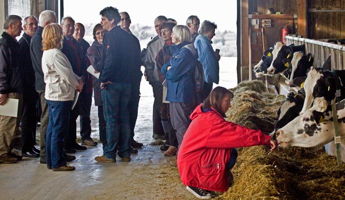 Ulrich Ramsaier (rechts) erläutert den Fermenter (hinten rechts) ... | ... und den Gärrest-Speicher (hinten links) |