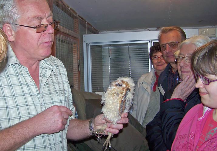 NABU Schwieberdingen-Hemmingen in der Greifvogelpflegestation mit Frau Wacker mit einer Waldohreule ... über unsere wildlebenden → Waldohreulen im Glemstal |