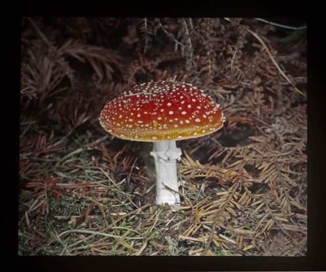 Foto von Manfred Rothenpieler + Von der Leinwand abfotografiert: Fliegenpilz im Schurwald am 2.10.2010 |