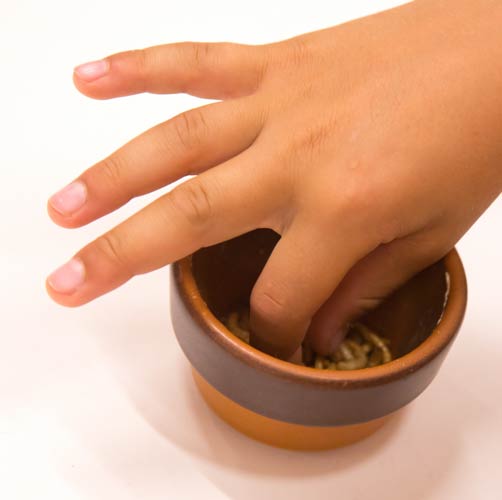 einige haben sich getraut, in einen Topf voller lebender Mehlwürmer zu greifen | Die Abendsegler-Fledermaus wird mit Mehlwürmern gefüttert |