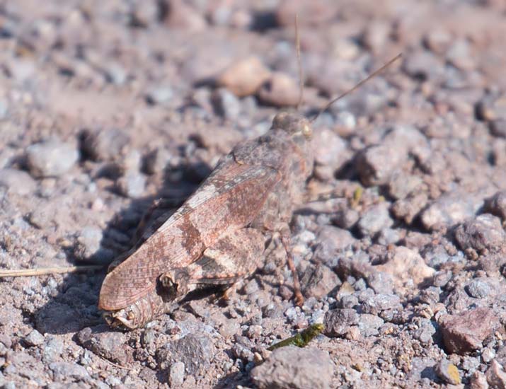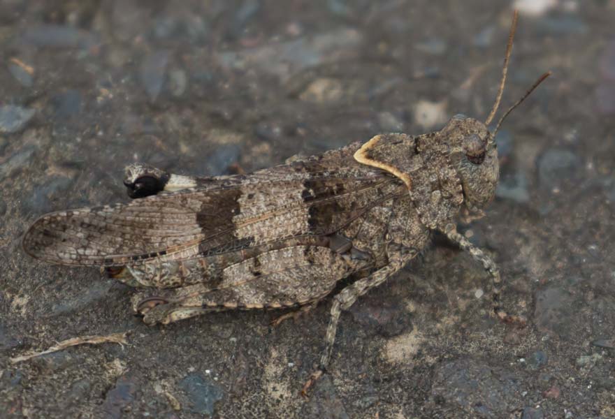 | Blauflügelige Ödlandschrecke auf der Strasse zur ehem. Schule |