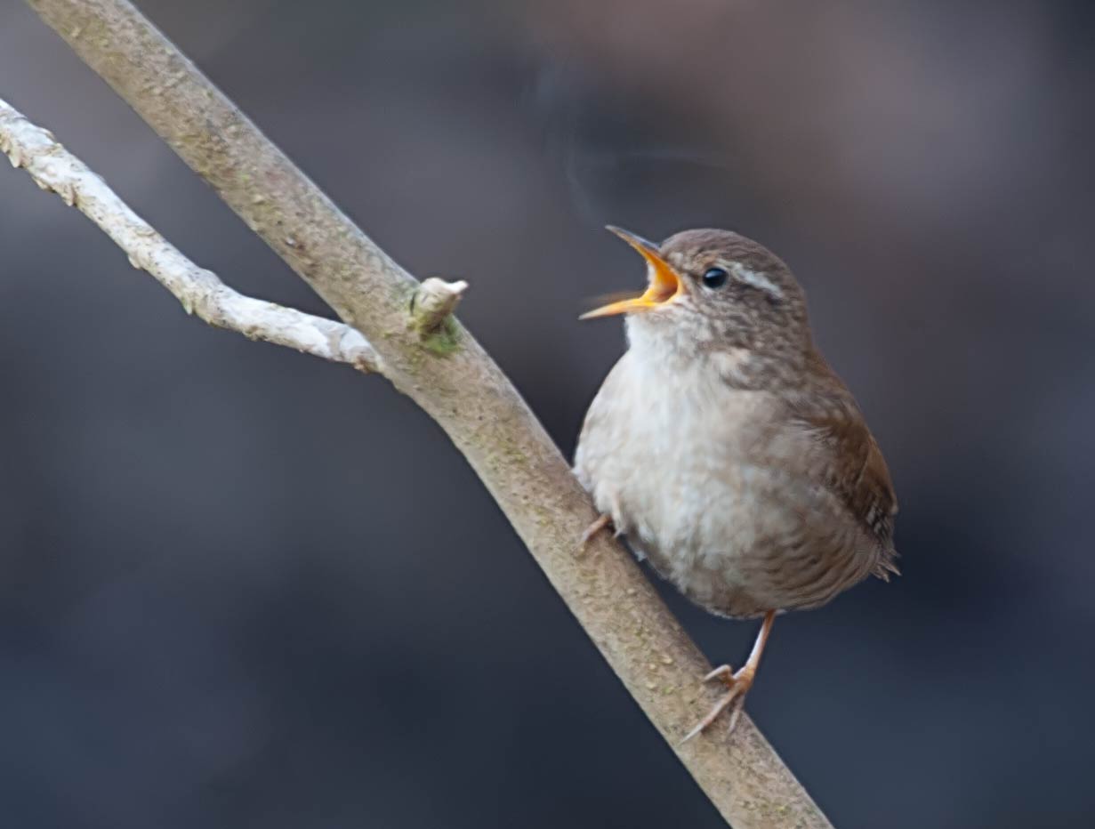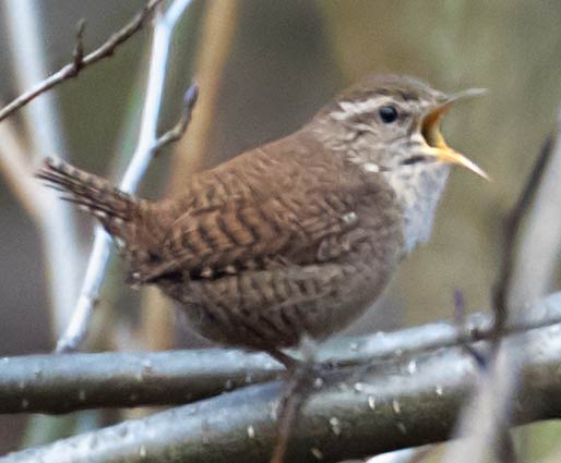 Singender Zaunkönig im März im Glemstal |