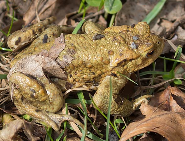 Erdkröte unterwegs beim Glemsweiher ... mehr über die → Erdkröte im Glemstal |