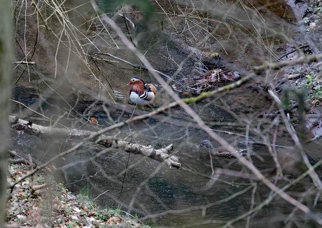 1 Mandarinentenpaar in der Glems beim Kulinarium, ca. 2 km nach dem flussabwärts