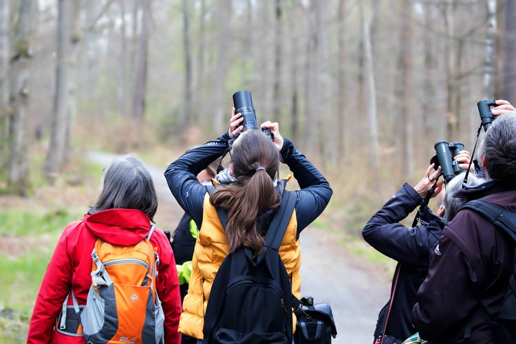 die Vogelstimmenführung mit Prof. Dr. Hartmut Kayser startet am Terrassenhaus |