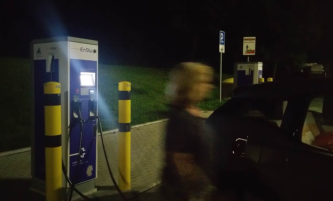 Bei der Hemminger Kulturnacht: Hilde kann ihr E-Auto bei Porsche laden mit 11kW, ohne Karte. Klasse. |