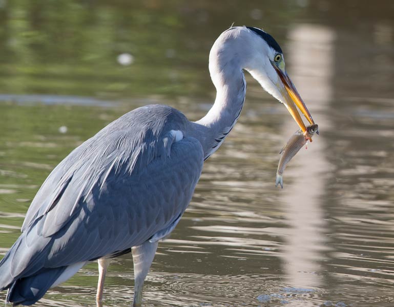 | Graureiher mit Fisch | Eisvogel ohne Fisch |