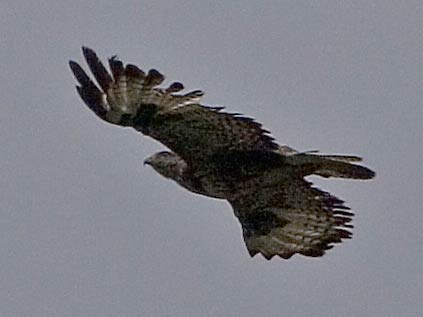 ein Mäusebussard. Auch wenn der im Bestimmbuch viel weniger zerzaust aussieht.