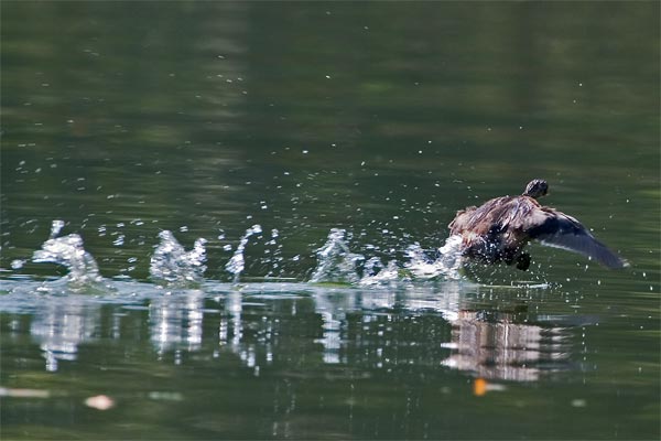 wie ein Blässhuhn übers Wasser. Nach meinen Bestimmbüchern vermute ich, daß es