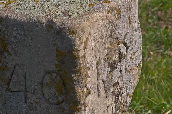 einen dieser Grenzsteine bei Niederalben. Auf der einen Seite steht KB für