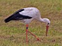 Bei Patersbach stand ein Weißstorch auf einer Wiese am Glantal neben