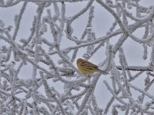 Goldammer (emberizza citrinella) im Rauhreif auf dem Herrmannsberg (535m) |
