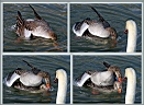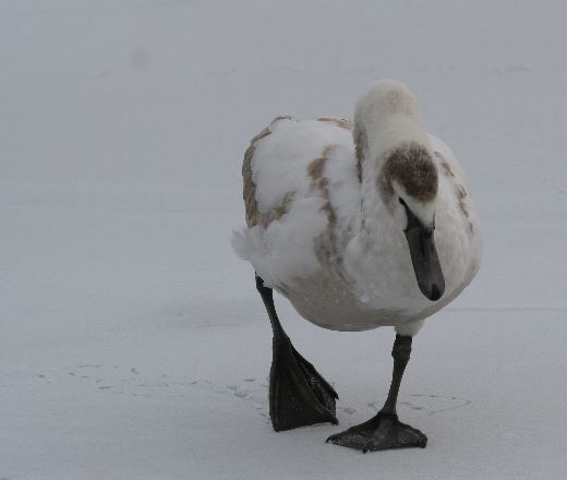 ► Morgennebel (links) ► "Albino-Stockente, ► Jungschwan stapft allein durch den Schnee (rechts) ► Stockente gut getarnt ► Haubentaucherpaar im See |